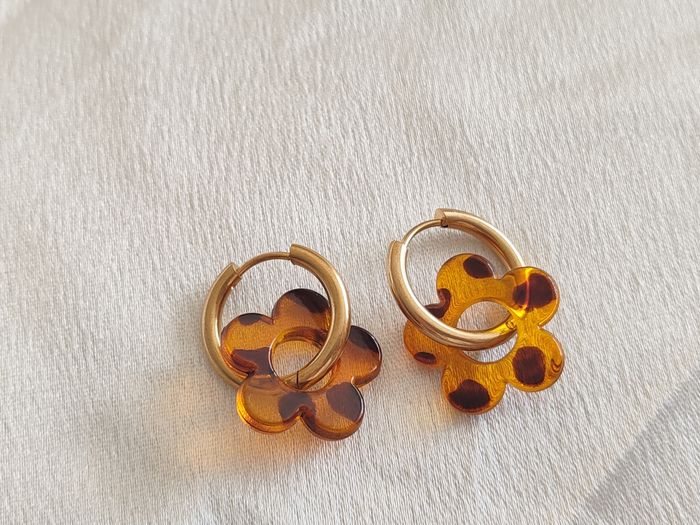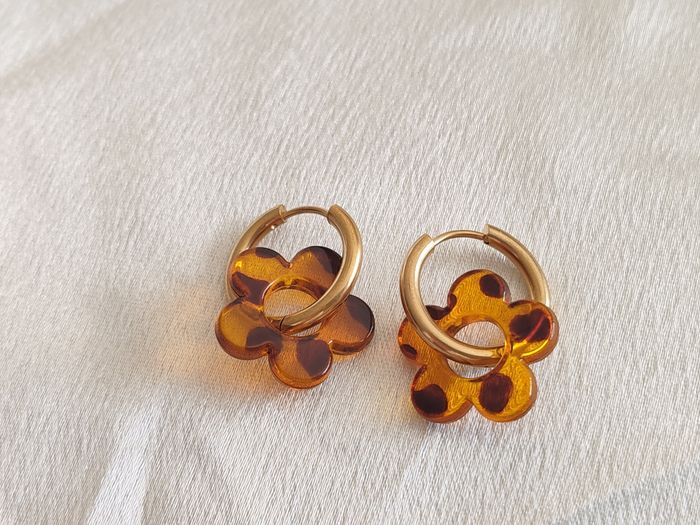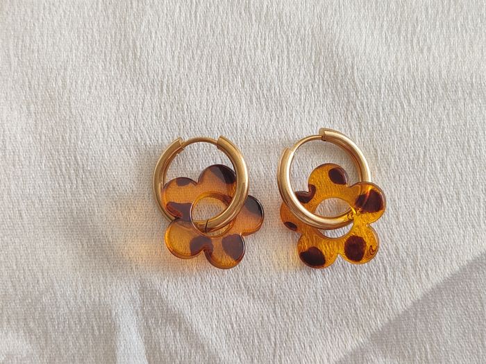 Créoles dorées pampille fleur léopard orangé  - photo numéro 1