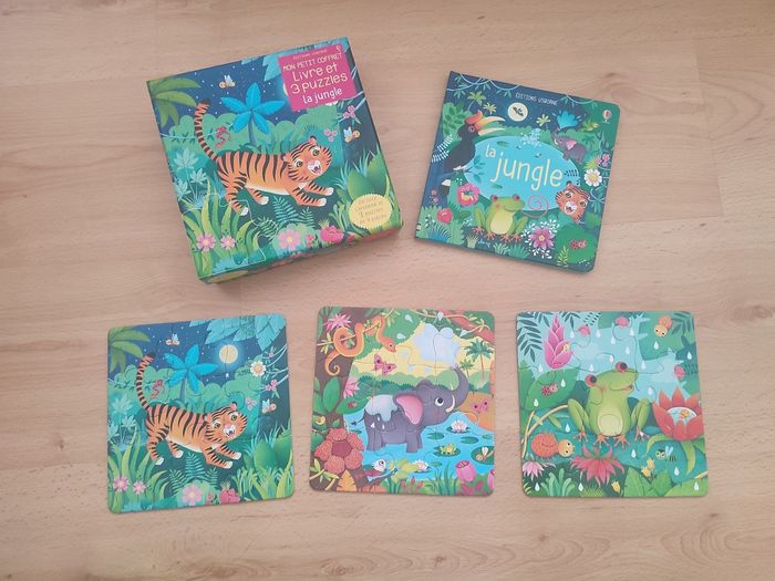 Coffret livre et 3 puzzles la jungle Usborne  - photo numéro 1