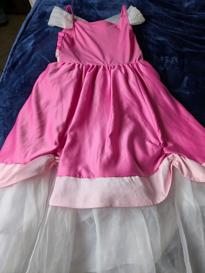 Déguisements cendrillon en très bon état, taille 7/8 ans. La robe Cendrillon de ménage est en très bon état. La robe rose est en très bon état mais présente des petits défauts. Défaut sur le voile ( voir photo), défaut juste au-dessus de l' oiseau, présente 2 petites tâches qui partiront certainement quand la robe sera lavée. Robe bleue en très bon état, un petit défaut au niveau de la manche et de l épaule ( voir photos) et les étoiles sont légèrement parties à un endroit. Déguisements achetés neuf ( 160 euros) au Disney store.