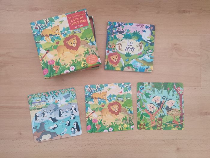 Coffret livre et 3 puzzles Le zoo usborne  - photo numéro 1