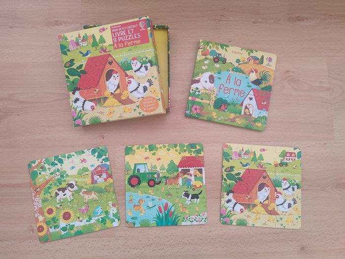 Coffret livre et 3 puzzles A la ferme Usborne  - photo numéro 1