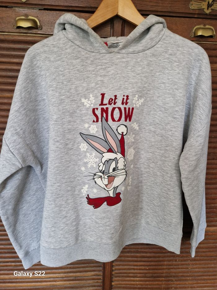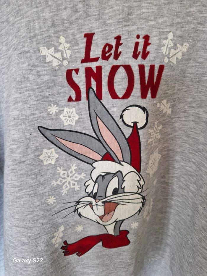 Je vends ce sweat gris chiné à capuchede la marque Gemo avec un imprimé Bugs Bunny "Let it snow". Sans poches - Type de produit : Sweat - Marque : Gemo - Taille : 40 - L - Couleur : Gris / Anthracite - Caractéristiques : Capuche, Imprimé Bugs Bunny