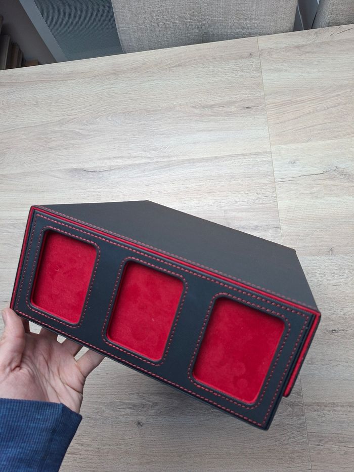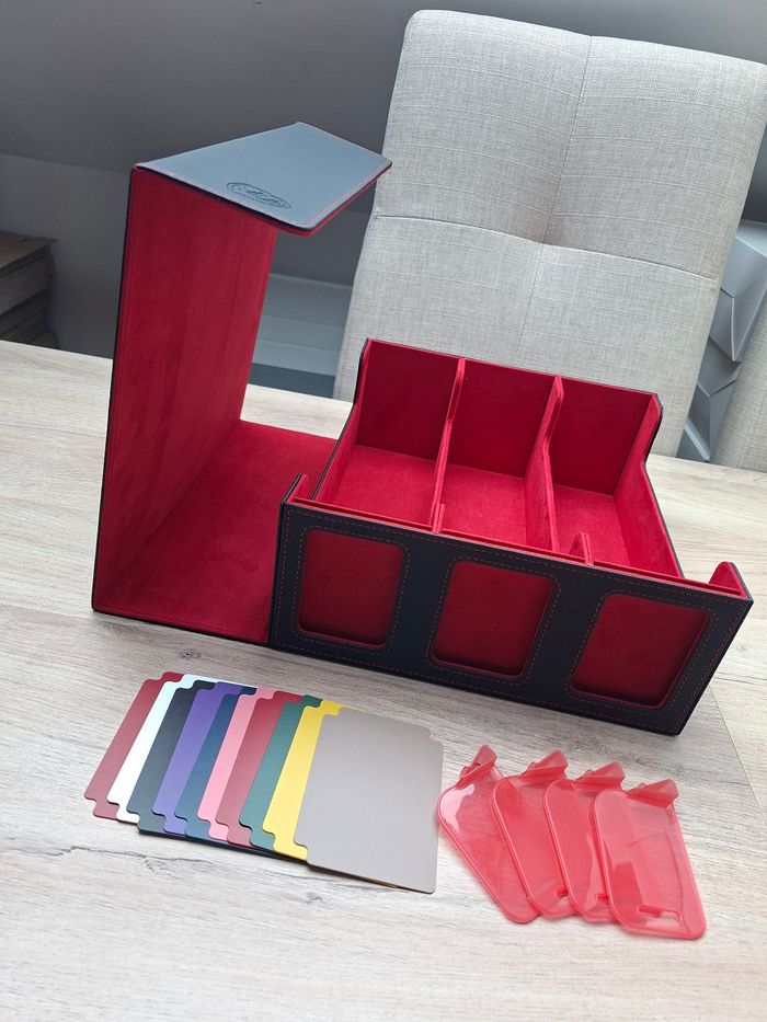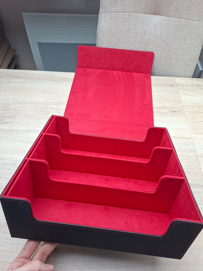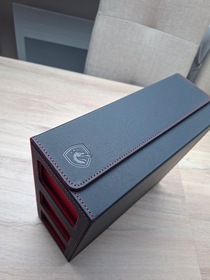 Je vends cette boîte de rangement pour cartes TCG (Pokémon, Yu-Gi-Oh!, Magic, Lorcana…). ✔ Capacité 1800 cartes sous sleeves et 2100 cartes classique . ✔ Ou 400 cartes sous toploaders ✔ Intérieur doux, fermeture aimantée ✔ Design rouge et noir élégant De la marque FireMint , logo gravé 🔥 24€ la boite , prix dégressif possible sur les lots 🔥 Boîte jamais utilisée, dans son emballage d’origine. 🧥 Autres rangements disponibles sur mon dressing
