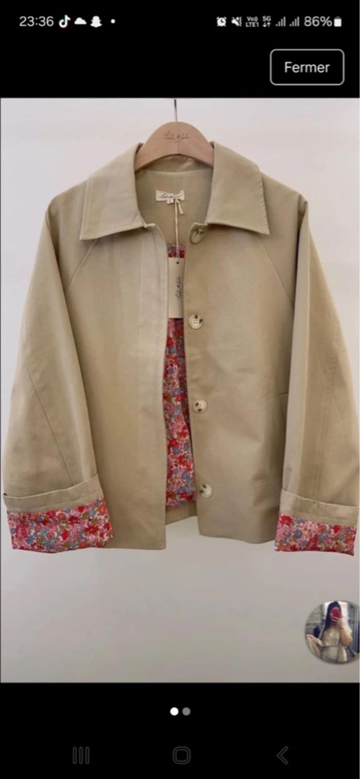 📏 Taille : S 📌 État : neuf avec étiquette emballage 🧵 Matière agréable et finitions soignées Pour plus d’informations concernant le prix les photo les mesures ou la composition venez privere Très jolie veste kaki pour femme, coupe courte légèrement évasée, idéale pour la mi-saison (printemps / automne) 🌿 Fermeture par boutons sur le devant et deux poches discrètes. ✨ Détail coup de cœur : superbe doublure fleurie visible à l’intérieur et aux poignets, qui apporte une touche chic et originale. 👗 Facile à associer : jean, pantalon beige, robe ou jupe 💚 Style casual chic / intemporel Idéale pour un look élégant au quotidien 🌸 Envoi rapide – n’hésite pas à me contacter pour toute question 😊