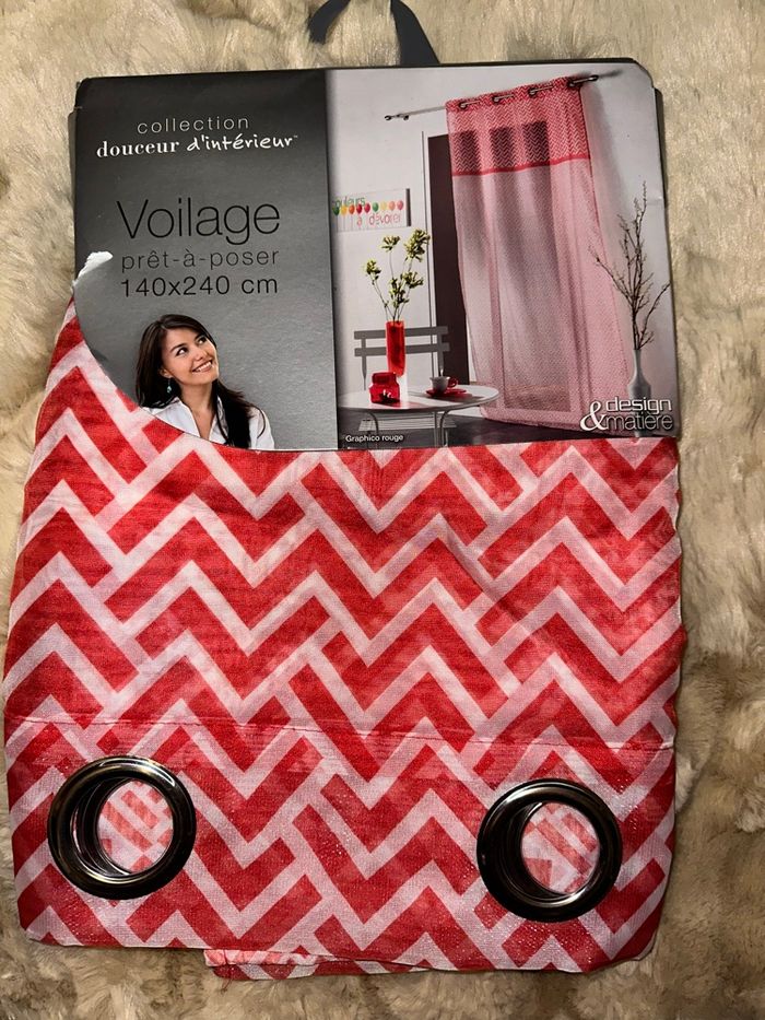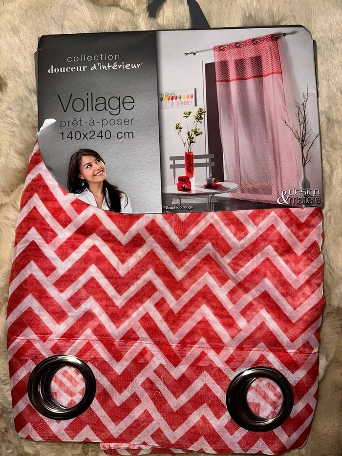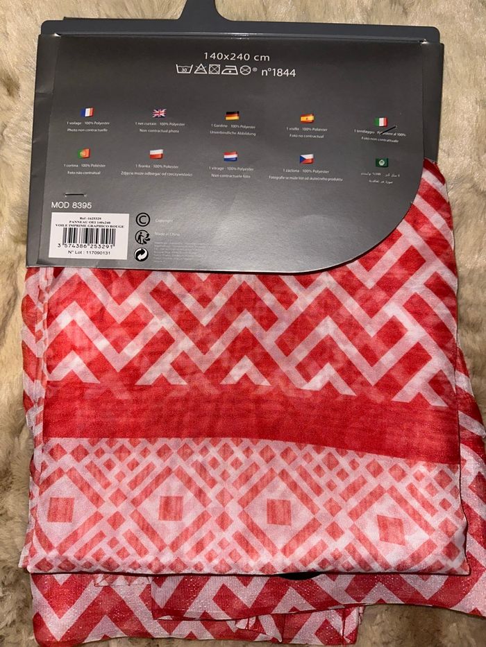 Voilage neuf unité, dim 140X240 blanc et rouge #decorationkay57070 #voilage #voilageneuf #neuf #rouge #blanc