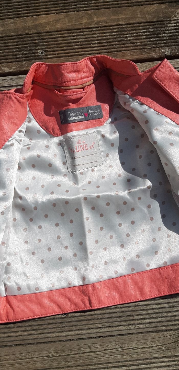 Blouson en simili cuir Demi-saison Couleur corail Motifs ethniques #blouson #similicuir #veste #fille #6mois