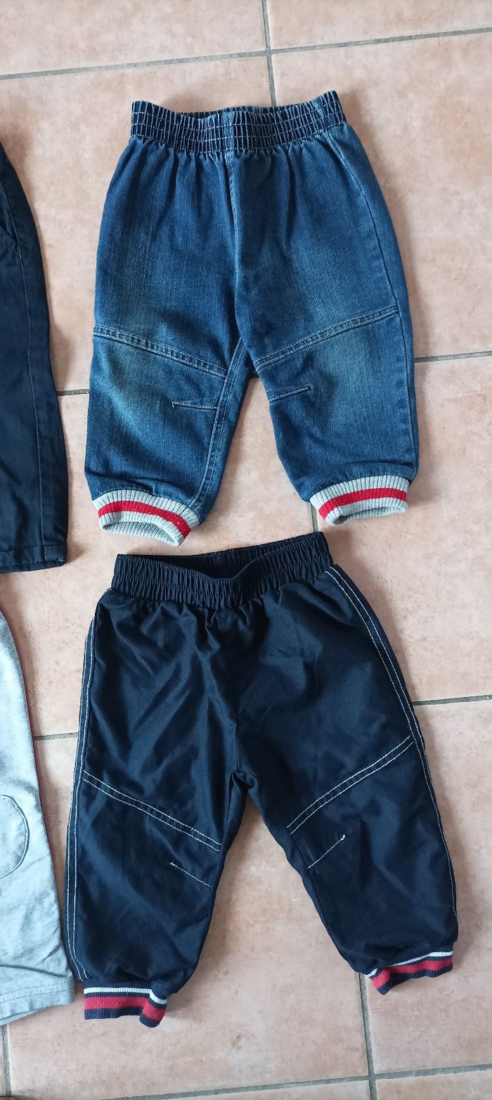 Lot de 4 pantalons en 12 mois: Un pantalon chino bleu marine, un pantalon en jean et 2 joggings En parfait état, comme neuf Marques: Orchestra, Kiabi ... ⭐ Merci de sélectionner uniquement Mondial Relay ou Relais colis pour les envois
