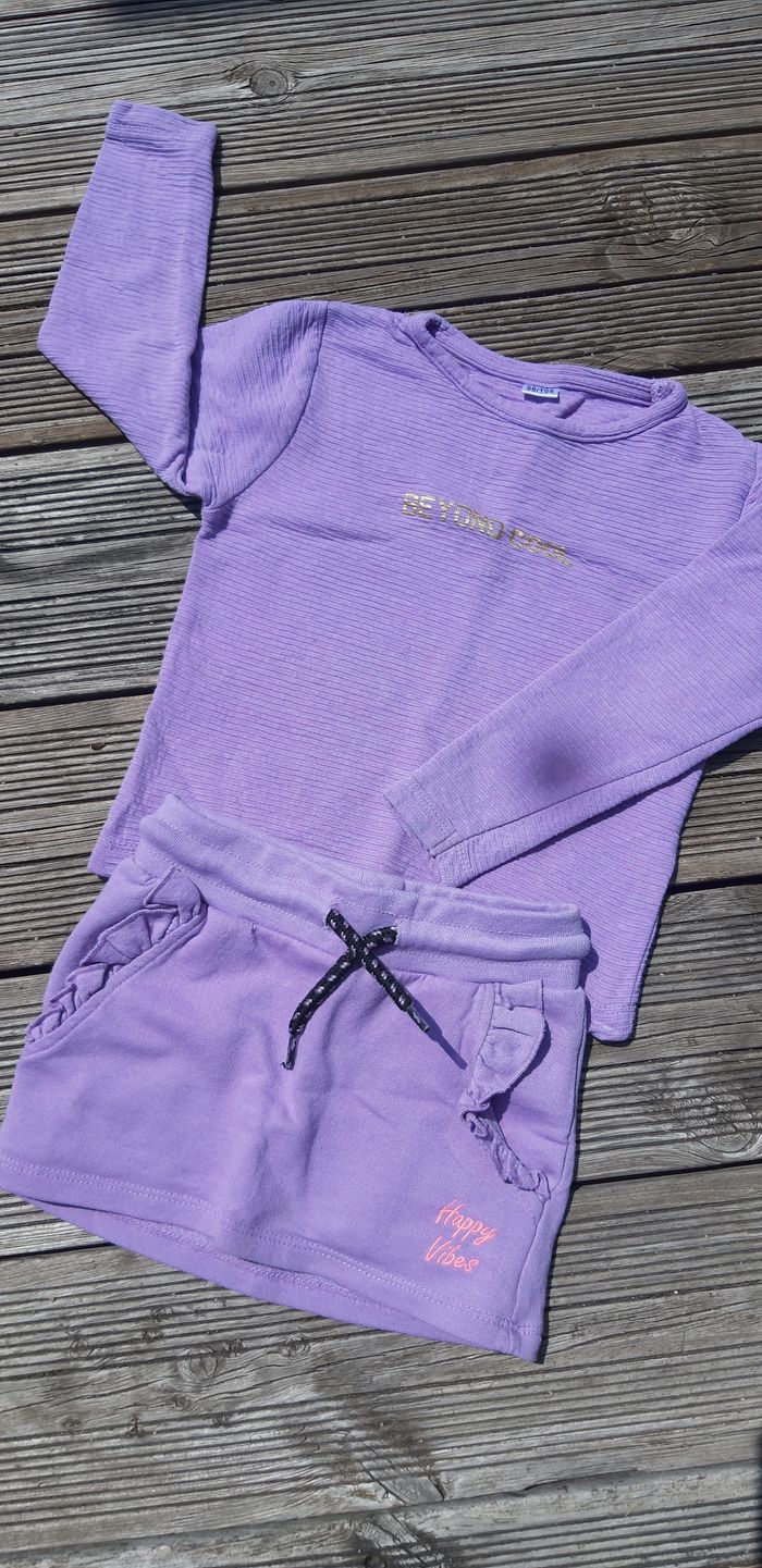 Ensemble jupe matière sweet + t-shirt manches longues Couleur lila #ensemble #jupe #pull #fille #3ans