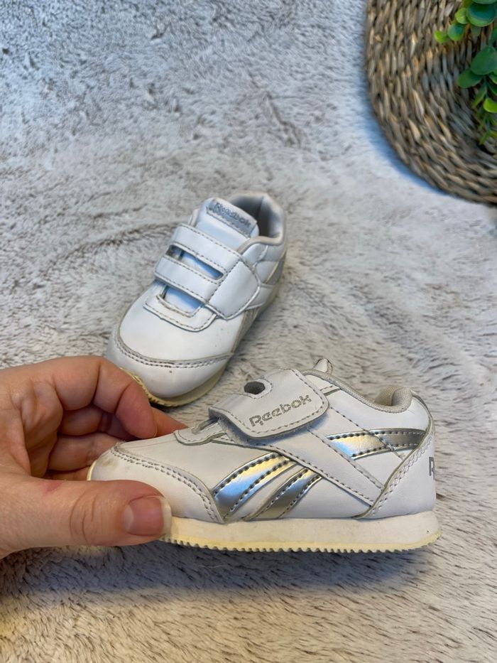 Basket à scratch Reebok Royal Cljog Blanche et argenté Très bonne état Taille 20