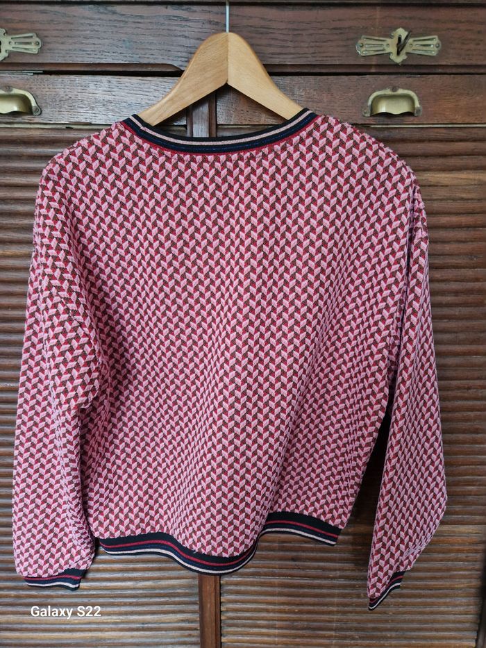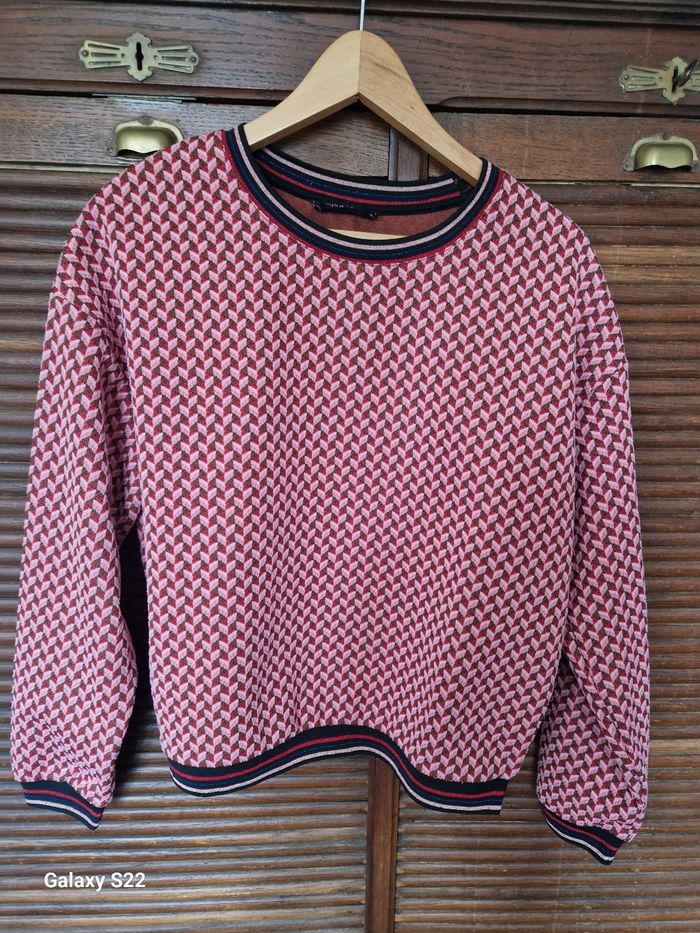 Je vends ce joli sweat rose de la marque Cache Cache. - Type de produit : Pull - Marque : Cache Cache - Taille : 36 - S - Couleur : Rose / Fuchsia - Matière : Maille - Caractéristiques : Motif géométrique, Bords côtelés