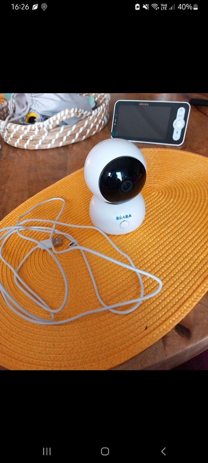 Se connecte à l'application beaba Fonction bruits blancs talkie-walkie température etc Très bon état et qualité au top ! Attention pas de moniteur avec. Câble inclus.