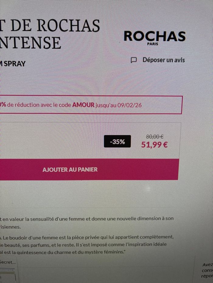 Rochas parfum : Secret de Rochas: Rose Intense  100ml