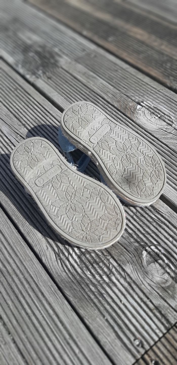 Sandales en jean bleu clair Motif fleurs multicolores Sangle en scratch à la cheville Taille 4 = taille 19 (EUR) #sandales #ete #pointure19 #jean