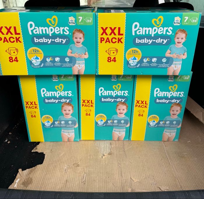 Vend 5 cartons de 84 couches chacune soit un total de 420 couches Pampers Taille 7 Taille 7: +15kg Plusieurs tailles disponibles