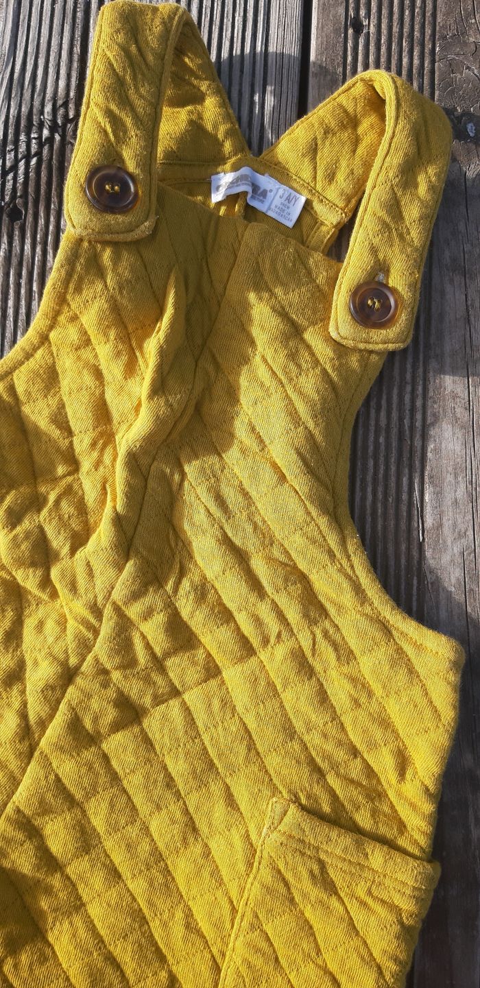 Salopette demi-saison 3 ans Tissu matelassée Jaune moutarde #Salopette #fille #3ans #demisaison