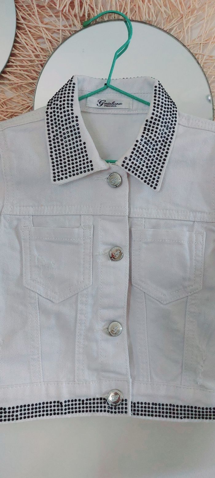 Blouson en jean blanc paillettes 2-3 ans  - photo numéro 1