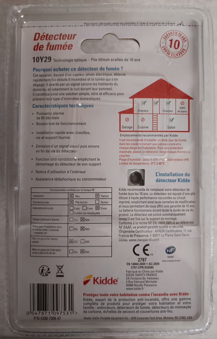 Kidde 10Y29 Détecteur de Fumée Compact avec Alerte Silencieuse Produit Neuf jamais ouvert