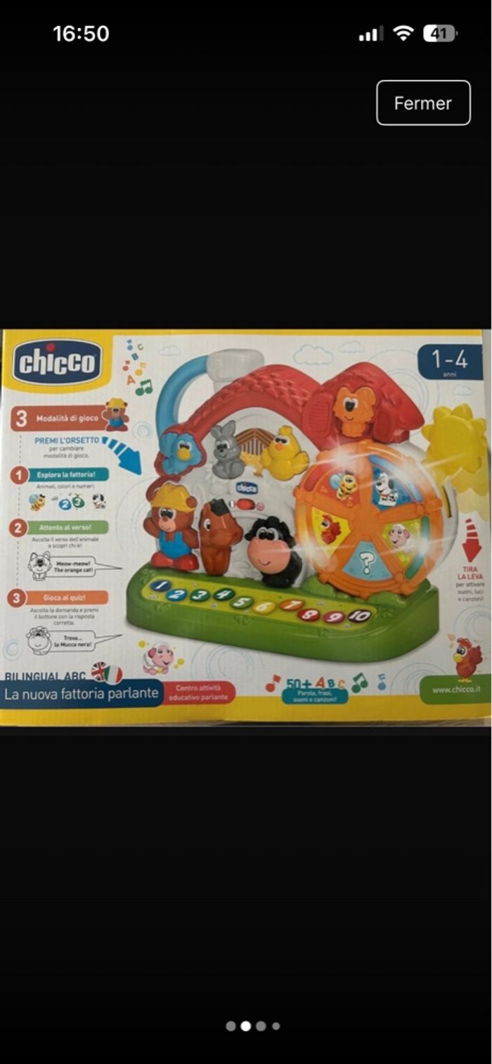 👍Neuf encore dans l’emballage Prix neuf 40€ NOUVELLE FERME PARLANTE Anglais/Italien Un espace bilingue enrichissant, avec des jouets et des activités pour bébés qui initie l'enfant au monde des animaux de la ferme, par le biais de modes de jeux éducatif ✅Envoi rapide et prix négociable