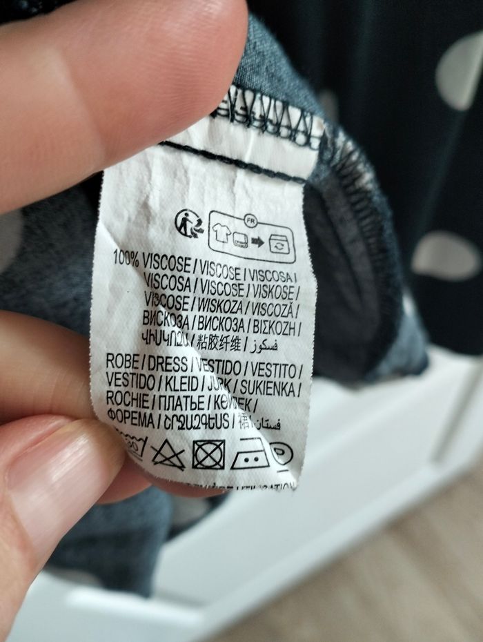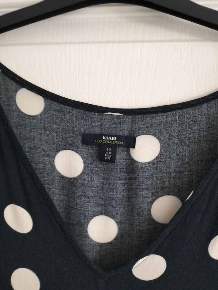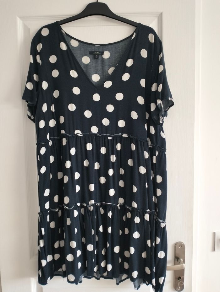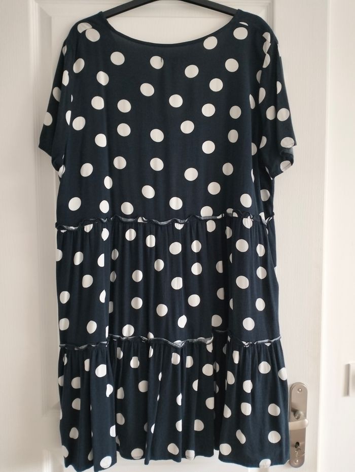 Robe à étages bleue marine à pois, en viscose. Légère et agréable à porter
