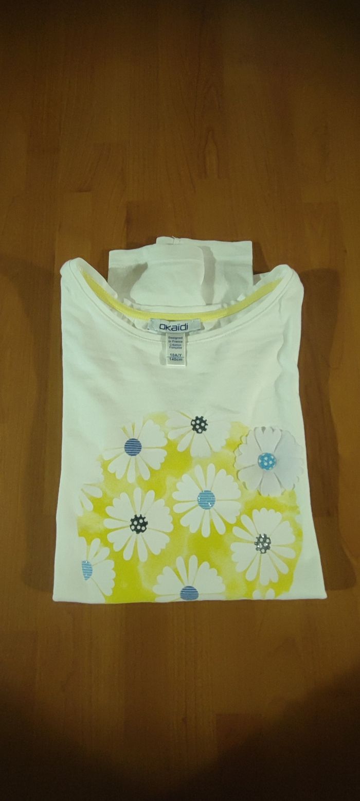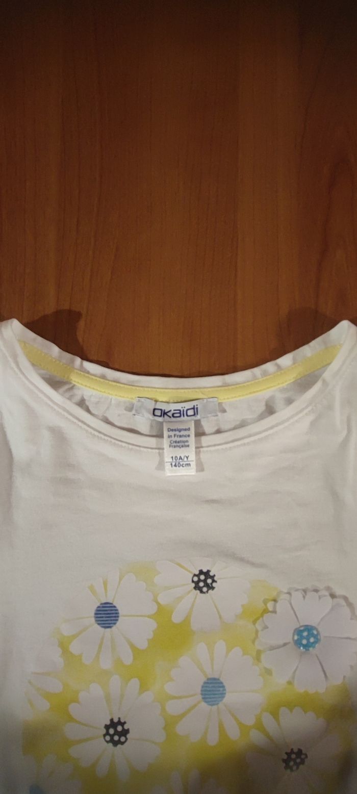 Je vends ce tee-shirt blanc pour enfant de la marque Okaïdi, taille 10 ans. - Type de produit : Tee-shirt - Marque : Okaïdi - Taille : 10 ans / 140 cm - Couleur : Blanc - Motif : Fleurs jaunes et blanches porté 1 fois N'hésitez pas à me contacter pour plus d'informations ou de photos.