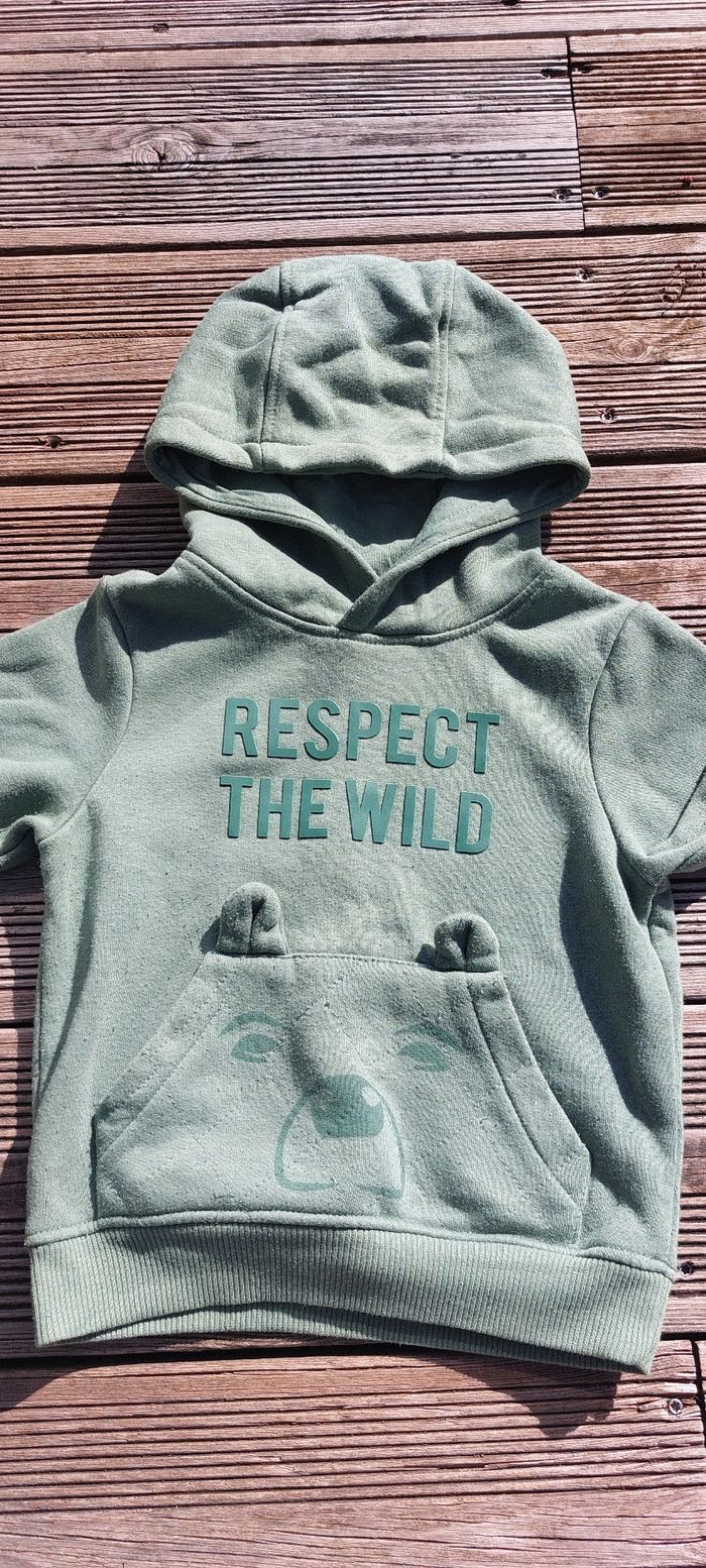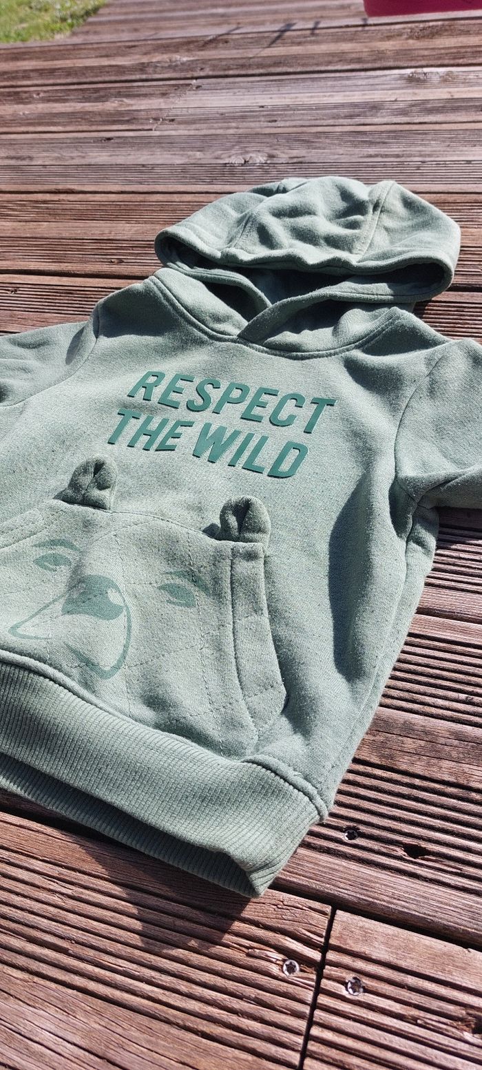 Pull sweat à capuche Vert sapin Tete d'ours sur la grande poche centrale Polaire à l'intérieur #pull #sweat #capuche #polaire #3ans