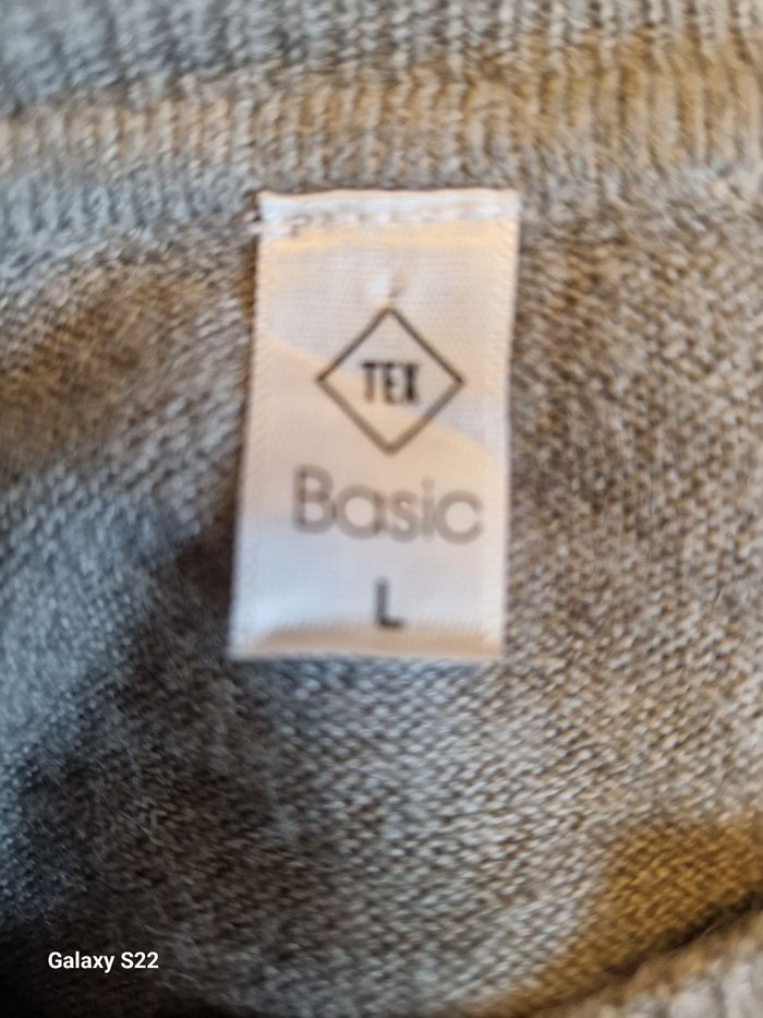Je vends ce pull gris en maille de la marque Tex. - Type de produit : Pull - Marque : Tex - Taille : L - Couleur : Gris / Anthracite - Caractéristiques : Col V