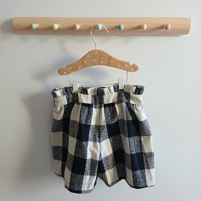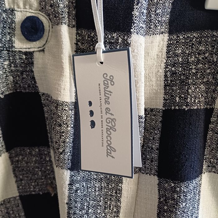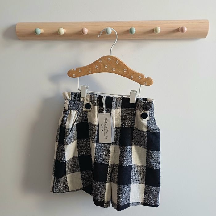 Short Tartine & chocolat Confectionné en tissu bouclé sublimé de carreaux monochromes, ce modèle est pourvu de poches latérales fendues Doublure : 100% polyester , entièrement doublé Matière : 71% polyester , 2% élasthanne, 27% viscose Taille réglable avec boutons 6 ans Neuf avec étiquette