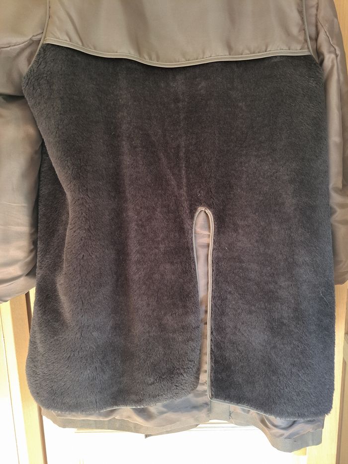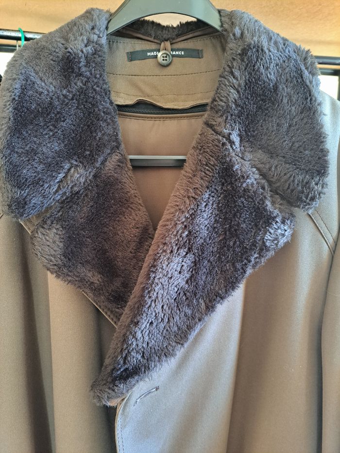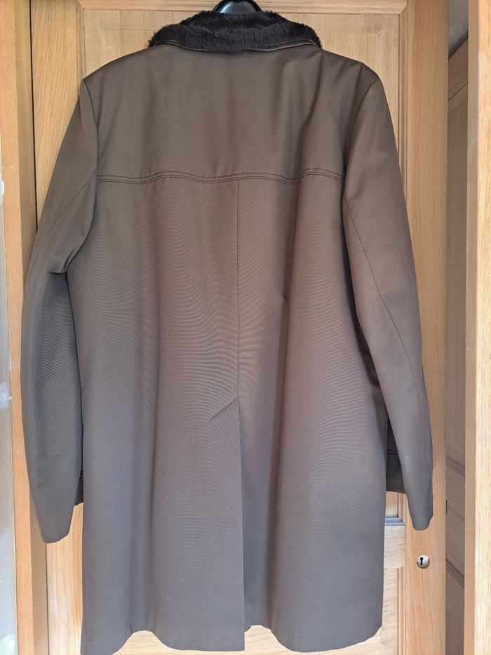 Doublure chaude et col amovible. Taille non indiquée,doit correspondre à 1 xxl . Dimensions: Aisselle à aisselle 64 cm Épaule à Épaule 49 cm Longueur 93 cm Convient pour homme ou femme Couleur taupe