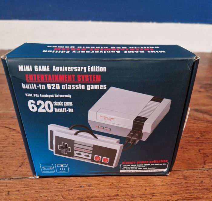 Je vends cette console de jeux Mini Game Anniversary Edition avec 620 jeux classiques intégrés. Les manettes ont des signes d'usure ( voir photos) Parfait état de fonctionnement.