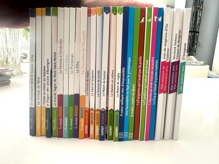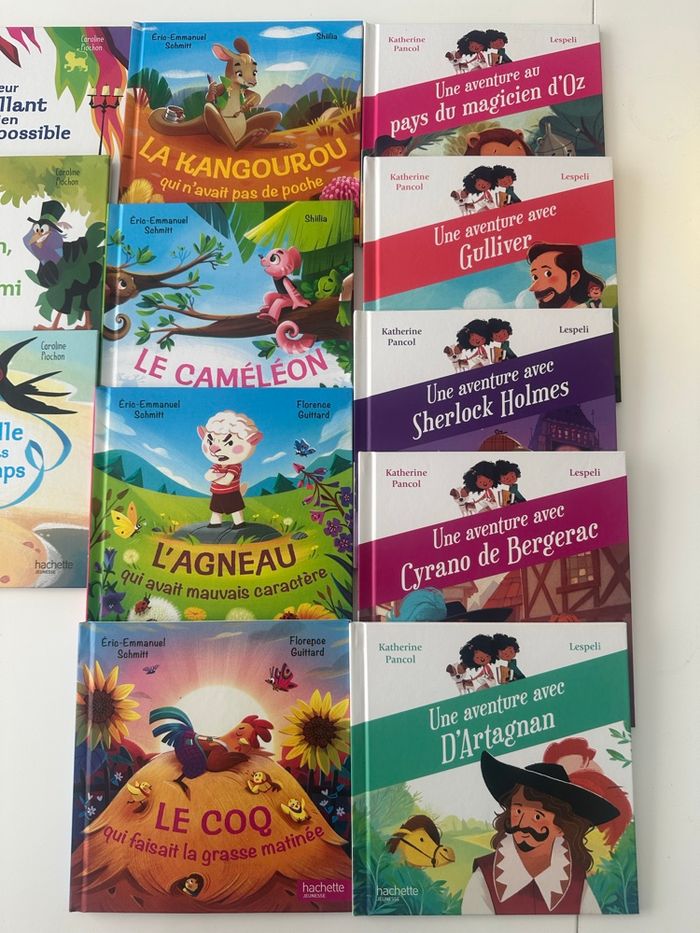 grand lot de livres ( 29 ) pour enfants en excellent état, idéal pour les premières lectures ou les histoires du soir 🌙 Collection variée avec aventures, animaux, humour et grands classiques adaptés. 👉 On retrouve notamment : • Série Mes p’tits héros sportifs (rugby, surf, rollers, basket, karaté, etc.) • Histoires d’animaux : Le caméléon, Le kangourou, L’agneau, Le coq… • Aventures jeunesse : Chasse au trésor en Sologne, Le dragon des volcans d’Auvergne, La grande vague du Mont-Saint-Michel… • Valeurs & émotions : À malin, malin et demi, Une hirondelle ne fait pas le printemps, À cœur vaillant rien d’impossible • Classiques revisités : Une aventure avec Sherlock Holmes, Cyrano de Bergerac, D’Artagnan, Gulliver, Le magicien d’Oz 📖 Livres colorés, couverture rigide, parfaits pour enfants en maternelle / primaire (≈ 4 à 8 ans) ✨ Très bon état général sont neufs