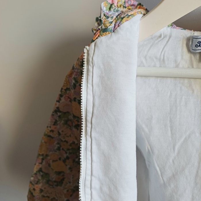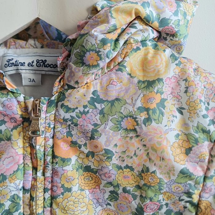 Coupe-vent Tartine & chocolat Rembourré, Manches longues, Poche(s) plaquée(s) devant, Poignets élastiqués, Bords volantés, Capuche doublée, Déperlant Fermeture zippée, Imprimé liberty 3 ans Très bon état