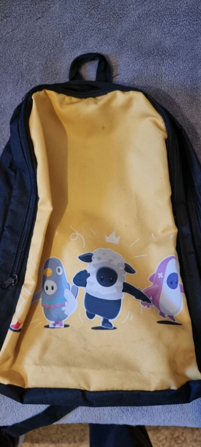 Je vends ce lot de sacs imprimé aux motifs Fall Guys. - Type de produit : Sac à dos et sac bandoulière - Marque : Autre - Matière : Synthétique - Couleur : Imprimé Motifs Fall Guys Bon état ( voir photo) N'hésitez pas à me contacter pour plus d'informations !