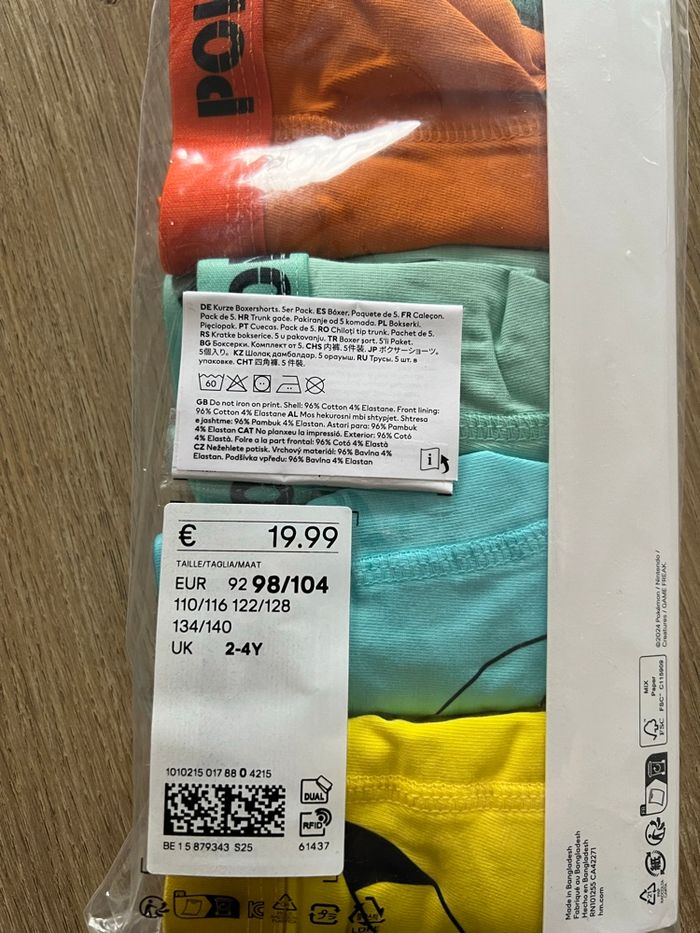 Je vends un lot de 5 caleçons enfants Pokémon, jamais portés. Matière : 96 % coton et 4 % élasthanne pour plus de confort. Tailles : 98 (2 ans) et 104 (4 ans), idéaux pour enfants de 2 à 4 ans. Marque: H&M. N'hésitez pas à me contacter si vous avez des questions !