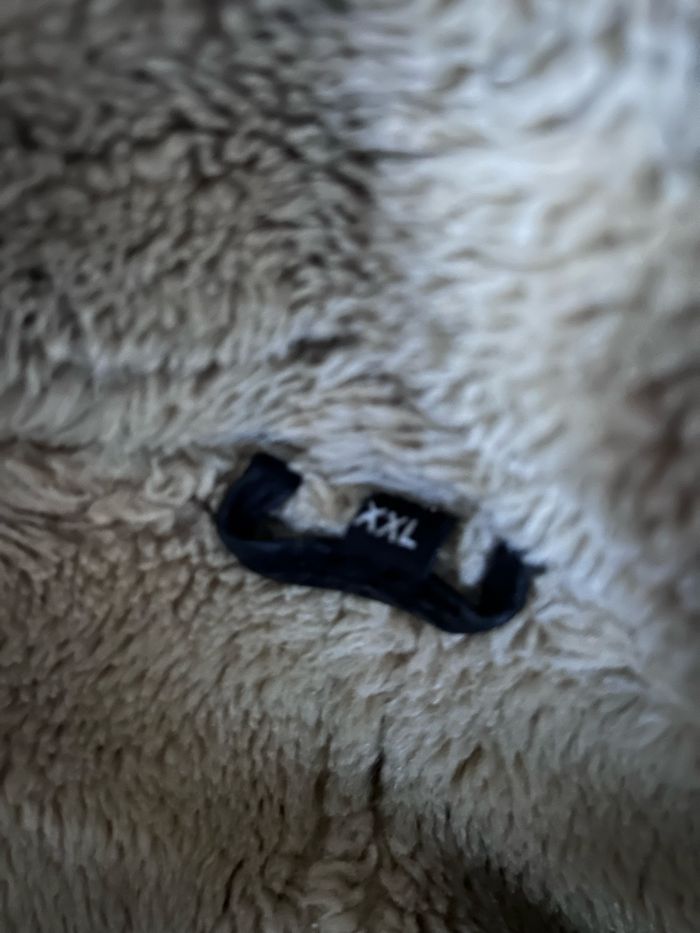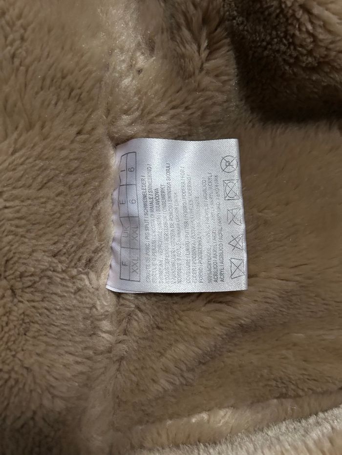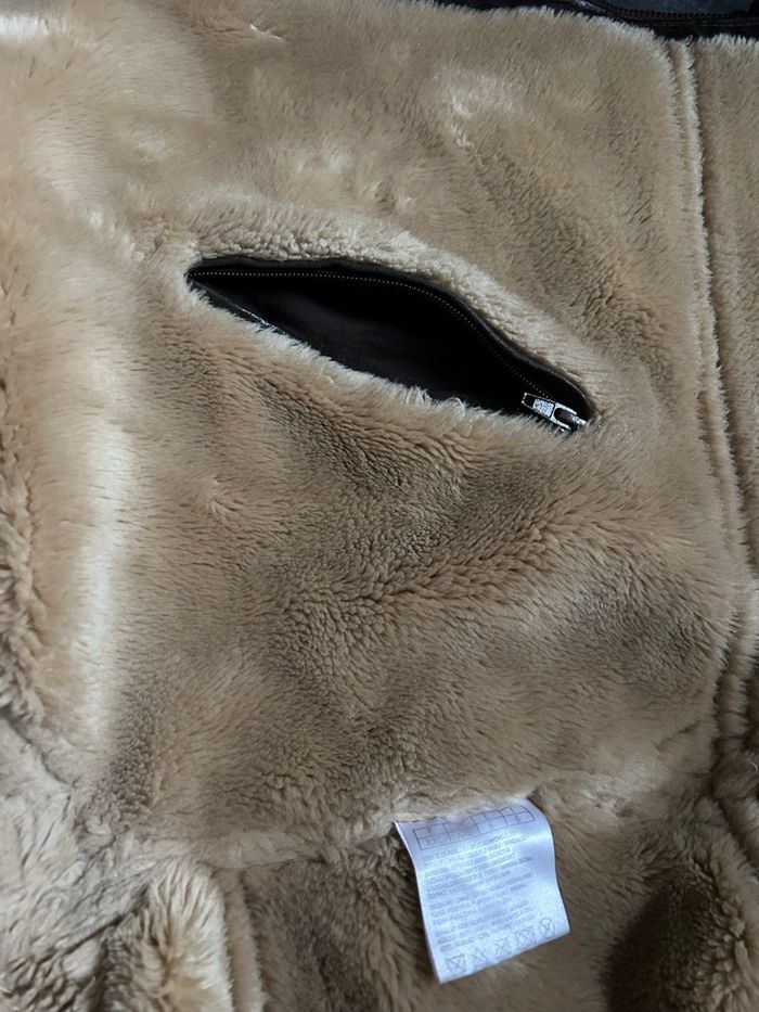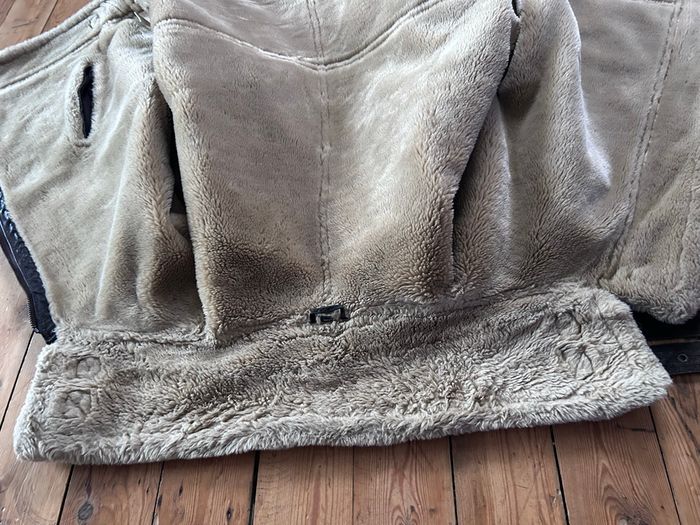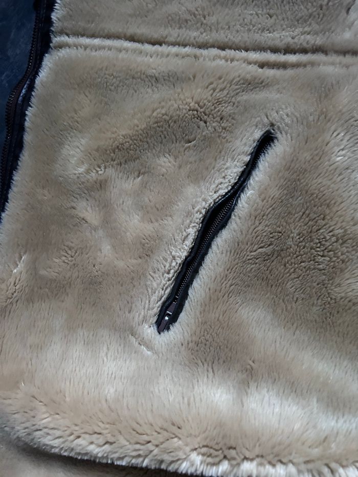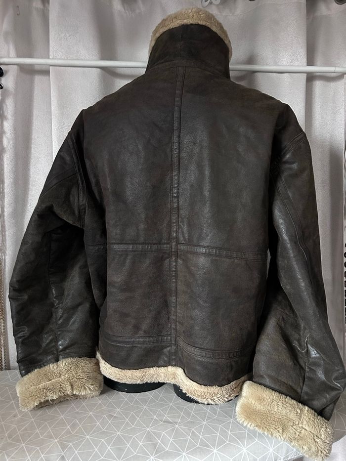 Blouson cuir vieilli marron Croûte de porc Fourrure beige acrylique en doublure Plusieurs poches Taille XXL Carrure 60 cm Aisselle à aisselle 71 cm Longueur 69 cm