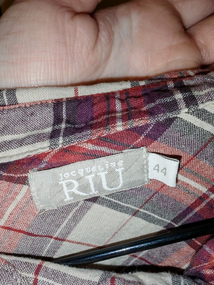 Chemise taille 44 en très bon état de chez Jacqueline riu. Très peu mise, à carreaux de couleurs crème et rouge.