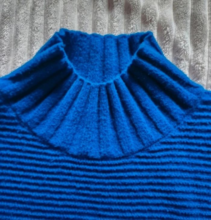 Pull bleu électrique côtelé – Col montant – Taille M - photo numéro 3