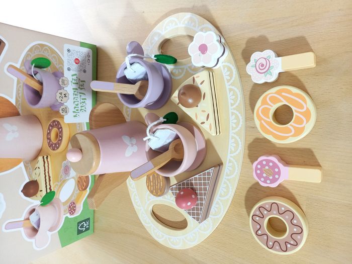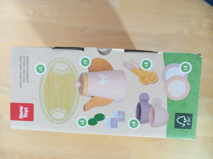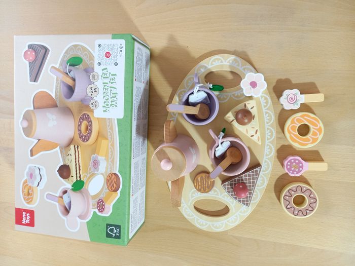 Adorables fruits en bois aimantés, à couper, vendu dans son emballage d'origine. Jeu JAMAIS utilisé 🏷 Autres jouets d'inspiration Montessori disponibles! ✨ Etat: Jamais utilisé, sorti de l'emballage uniquement pour prendre les photos ✨​ Style: Jeu d'imitation ✨​ Thème: Coordination main-œil / motricité fine / imagination ✨​ Age: Dès 3 ans 📏​ Dimension de l'emballage: 30 x 18 x 8,5 cm (H) Il se compose de: 1 théière 1 plateau 2 tasses à café 2 soucoupes 2 cuillères 2 sachets de thé des douceurs: 2 donuts, 2 parts de gâteau, 2 biscuits, 2 sucettes, pour inventer des histoires à l’infini. ⚠️ Il ne s'agit pas de la marque Montessori mais d'un jeu s'inspirant de cette pédagogie. ❓ Spécificités: En bois 🌳 Pièces faciles à manipuler 🃏 Jeu inspiration Montessori 🧵 Allez regarder mon dressing, nombreux jeux de société et jouets pour enfants disponibles ou en cours de publication. Abonnez-vous :)
