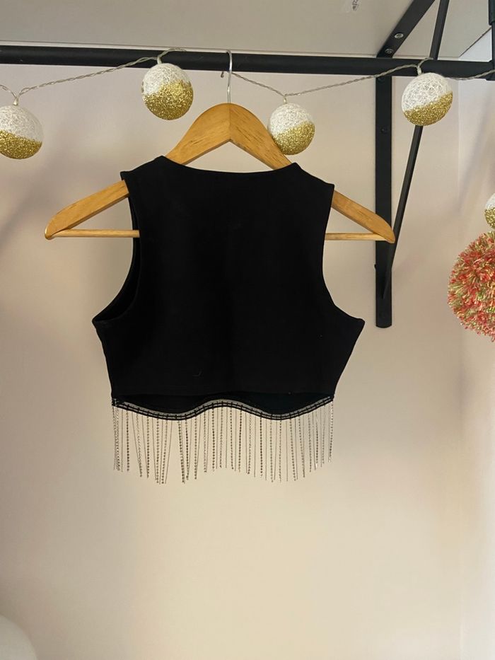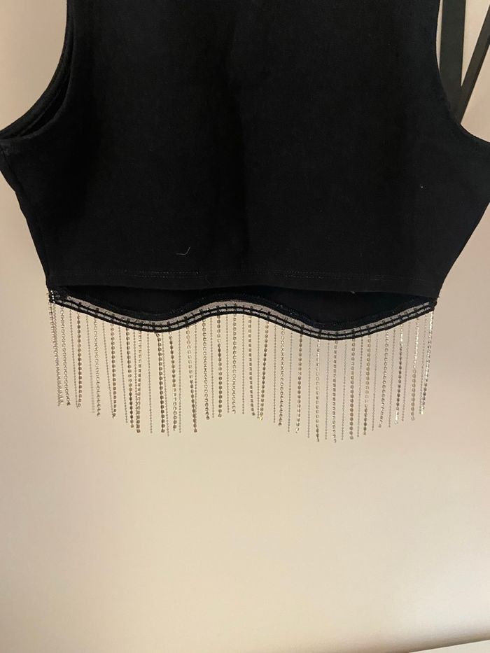 Top noir, Tally Weijl, taille S, avec frange en sequins sur le bas. Très élégant, parfait pour une soirée