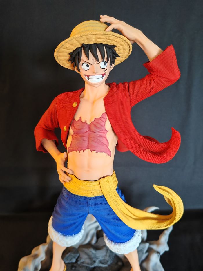 Je vends cette figurine de Luffy, le personnage principal de l'anime One Piece, d'une taille de 40 cm. - Type de produit : Figurine - Personnage : Luffy (One Piece) - Taille : 40 cm - Matière : Plastique - Couleurs : Multicolore Très bon état Imprimé en 3d plastique et peint à la main