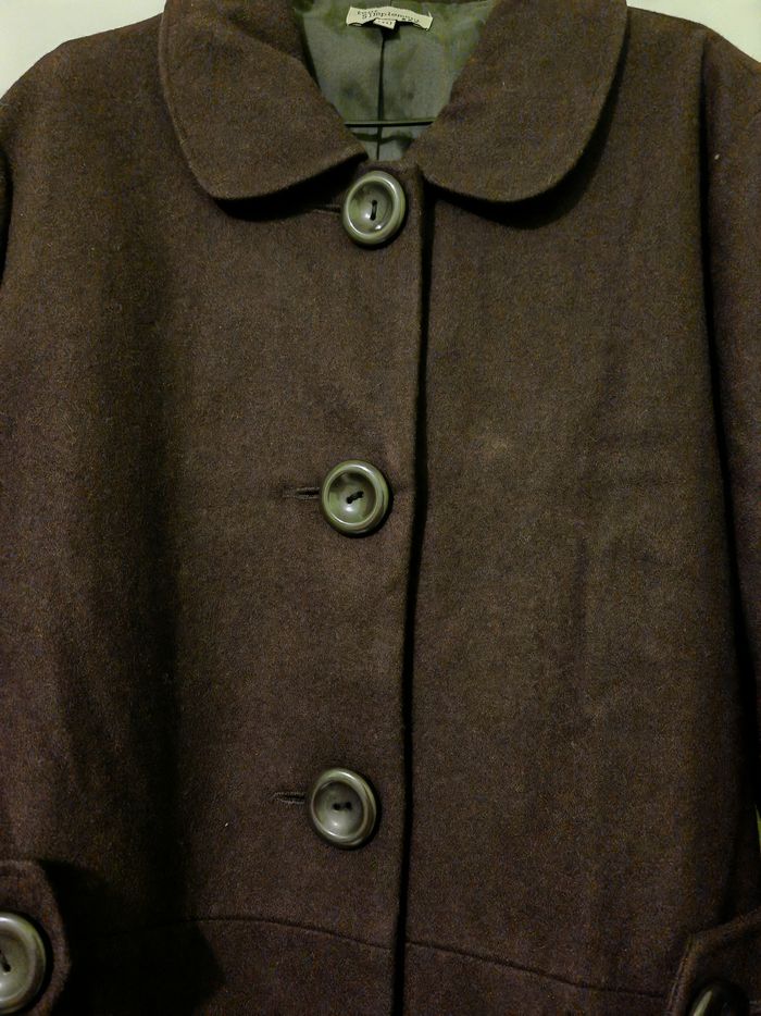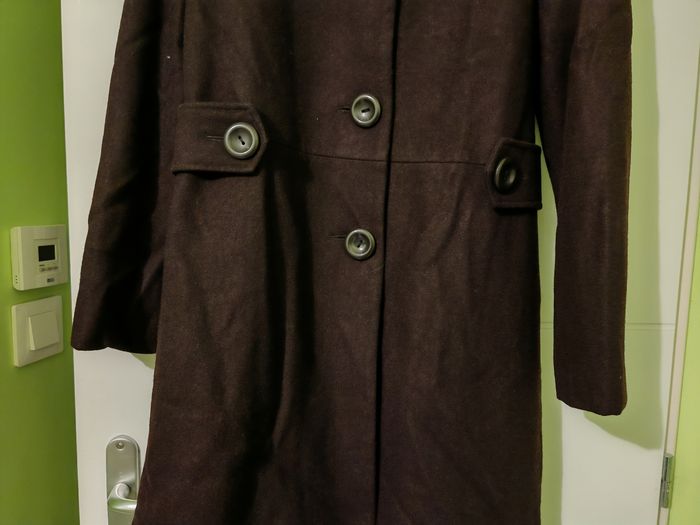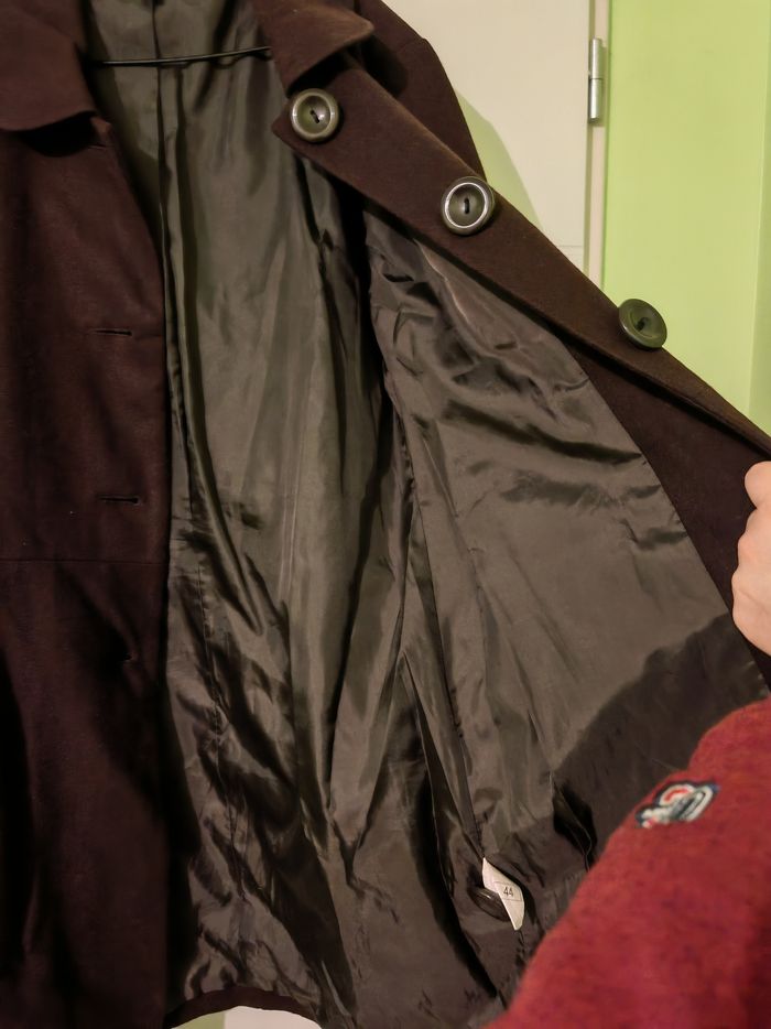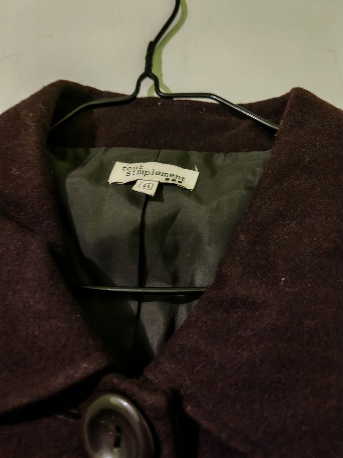 Je vends un manteau de taille 44 en bon état. De matière laine et polyester plus autres fibres. Doublure : 100 % polyester De couleur violine.