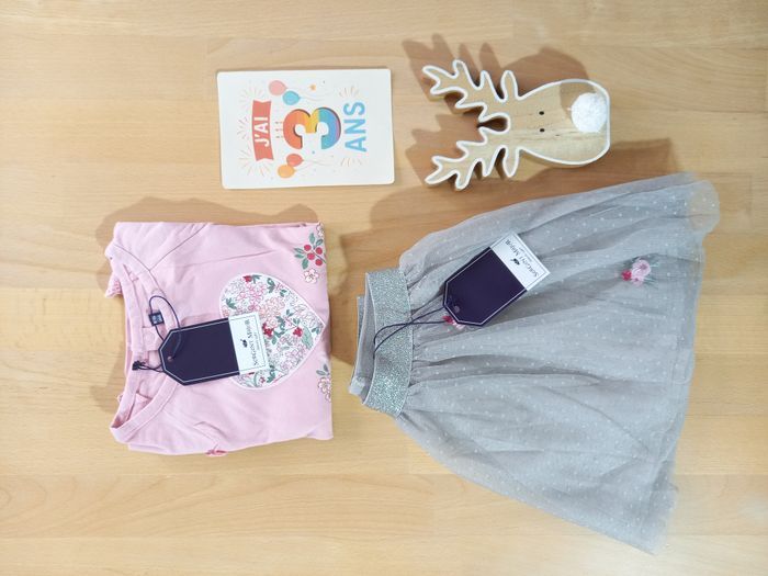 Ensemble 2 pièces de la marque Sergent Major taille 3 ans, 98 cm 🏷 Vêtements issus de la collection: Meringue à Vienne 🎀 Il se compose de: - une jupe en tulle, étiquetée 🏷 - un t-shirt rose avec cœur étiqueté 🏷 ✨ Je commence les publications en 3 ans, et il y en aura beaucoup. N'hésitez pas à vous abonner à mon profil pour suivre mes nouveautés. Beaucoup de Sergent Major à venir! 🎀​​ Articles 100% fille dans mon dressing, de la taille 24 à 36 mois, des articles de puériculture, et des jouets de la naissance à 6-7 ans.