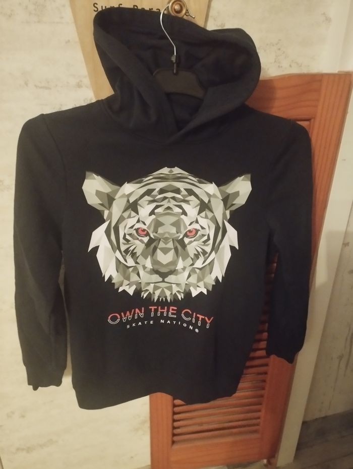 Sweat a capuche noir avec tête de tigre porté 1 fois très bon état