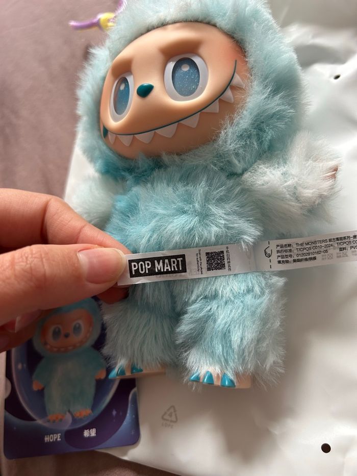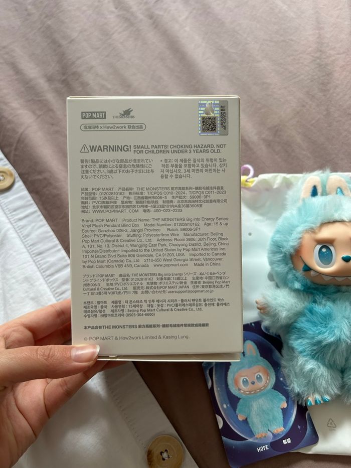 Labubu Big Into Energy Hope 🩵 Labubu The Monsters - Big into Energy 🌈 Authentique, acheté sur l’application Pop Mart ❤️ Labubu neuf, juste sorti de la boîte pour la photo📸 J’ai plusieurs Labubu à vendre, ils sont à 25€ mais il y a un code promo Beebs de -30% jusqu’au 5 février (code promo : CHOCOLAT30), cela les fait à 17,50€ l’un 🌈 Je vends d’autres Labubu dans mon dressing, n’hésitez pas à faire un lot si il y en a plusieurs qui vous intéresse 🩷