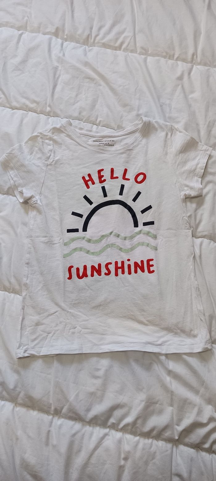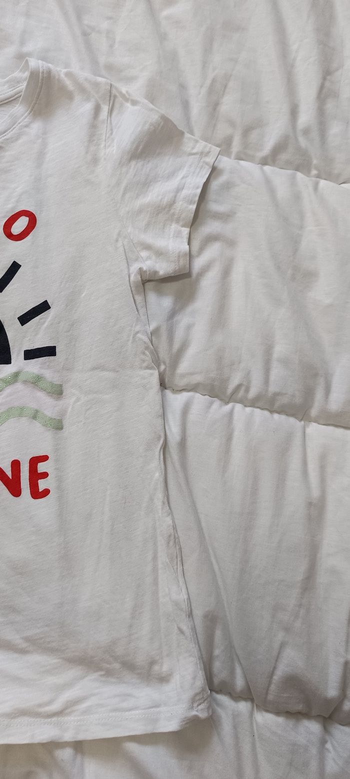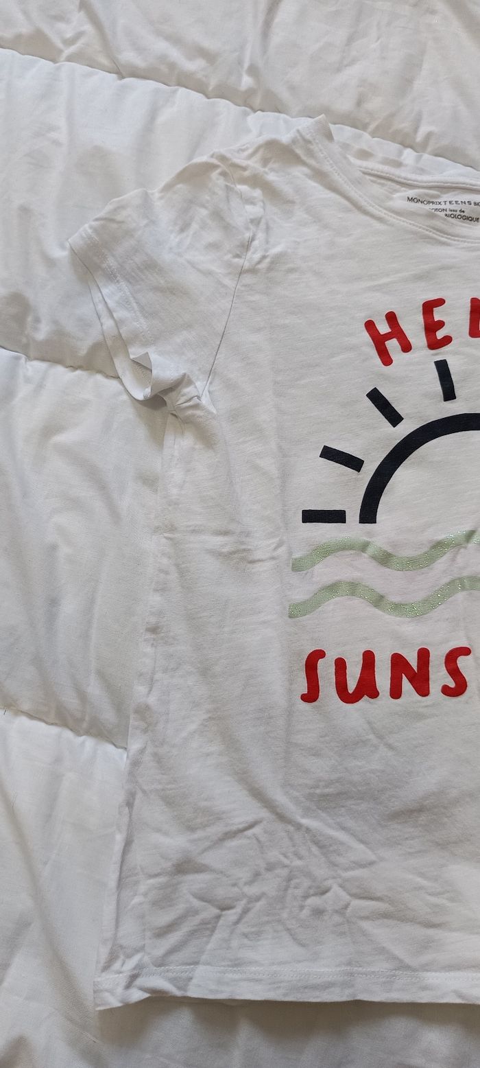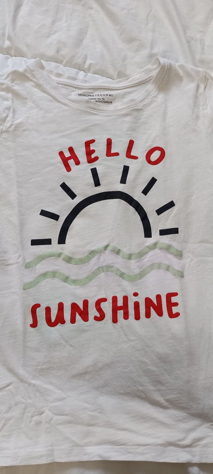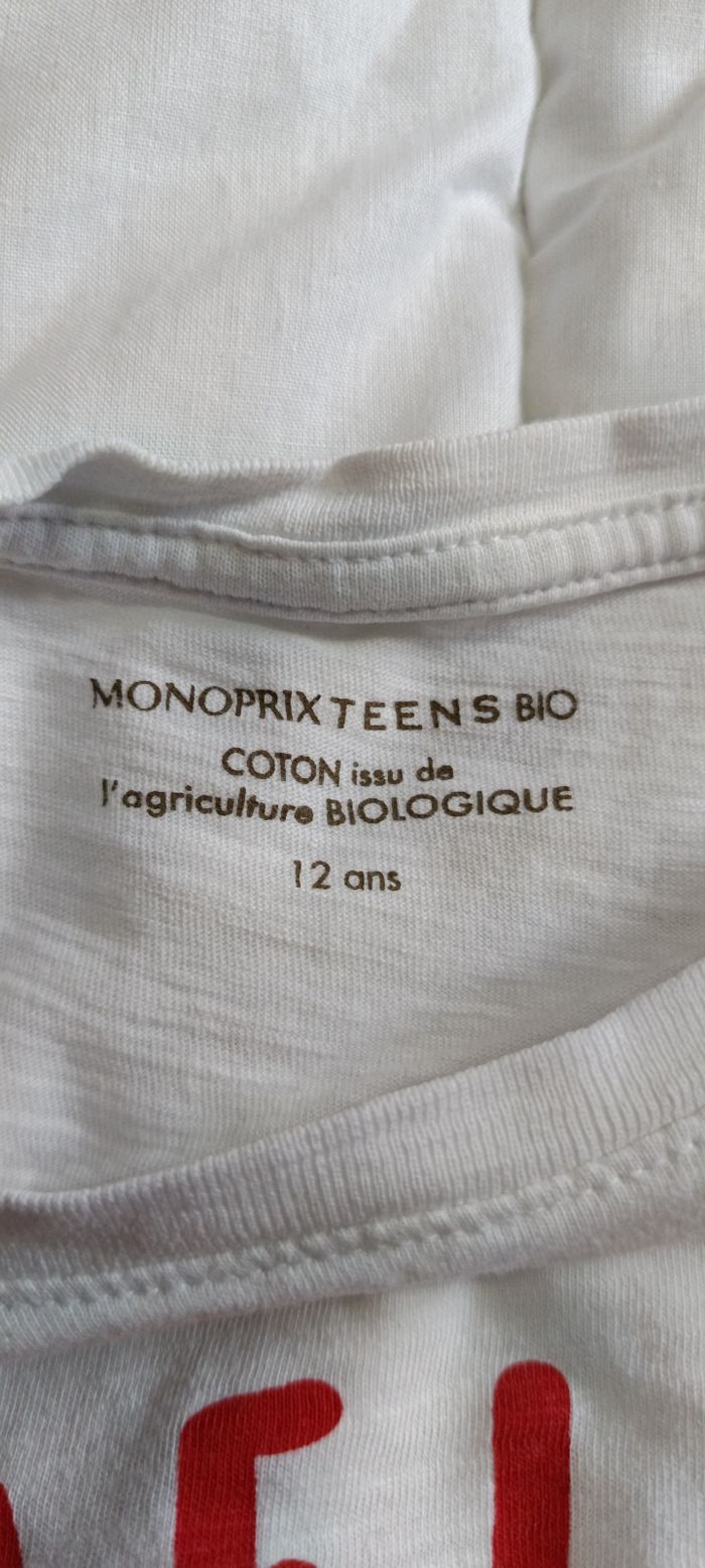 T-shirt manches courtes de coloris blanc avec imprimé Taille 12 ans de chez Monoprix Bon état - ni trou ni tâche