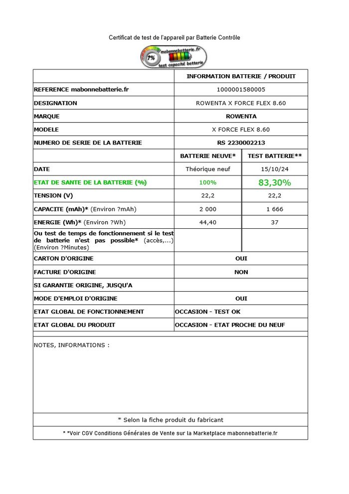 aspirateur rowenta x force flex 8.60 batterie ok Je n'en ai plus l'utilité. Je l'avais acheté en Dépot vente avec test batterie (photo 2) Prix non négociable