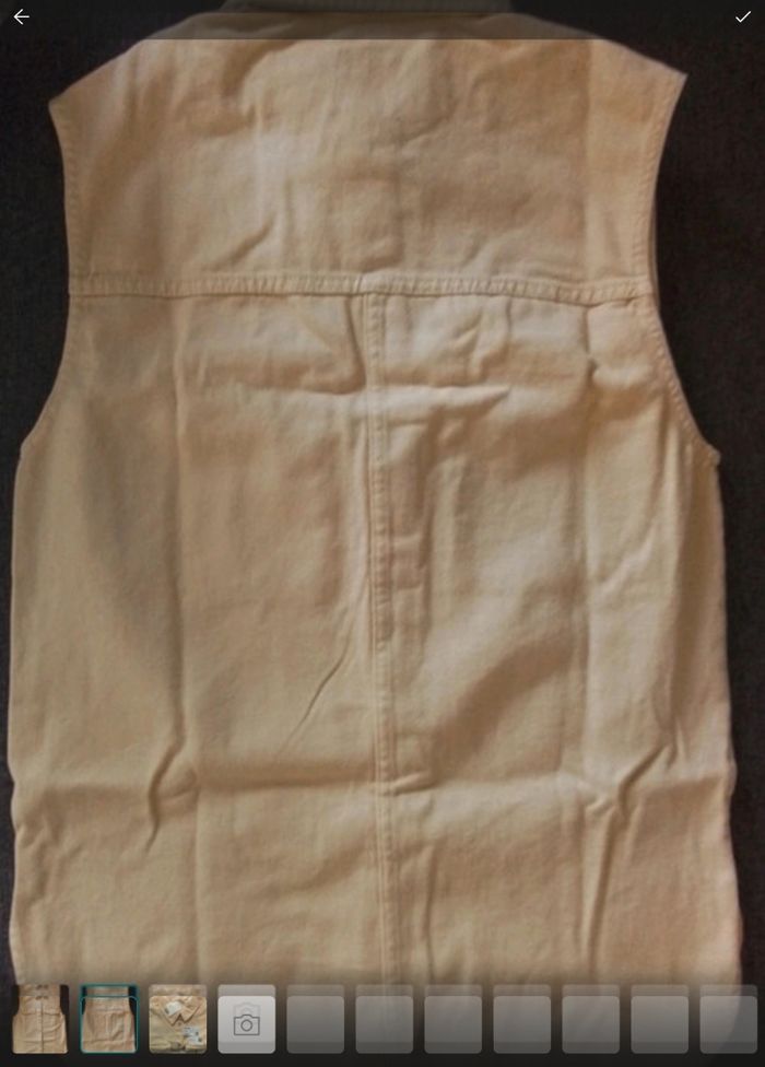 Surchemise sans manches en denim de coton lavé. Modèle avec col, boutonnage et poches de poitrine à rabat. Non doublée. Jaune très clair. Taille XS mais peut-être porté par un S. Neuf emballé. Longueur 74cm, épaules 41cm, aisselle à aisselle 50cm. Prix d’achat 24.99€ #surchemiseoversize #oversize #surchemise #surchemisefemme #surchemisesansmanches #surchemisehetm #surchemiseoversize34 #surchemiseoversize36