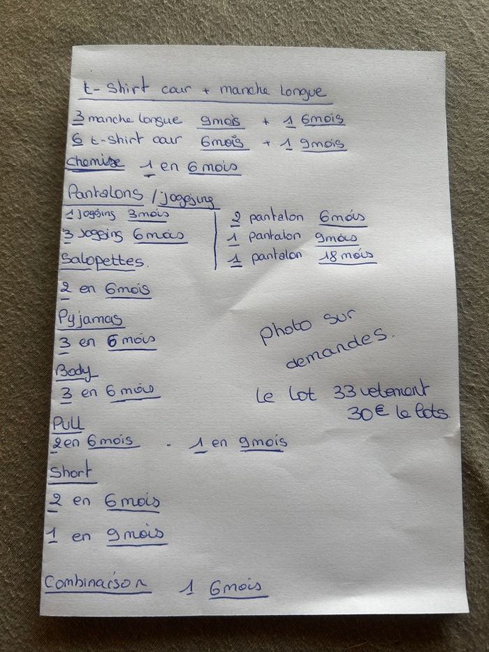 Bonjour Je met en vente vêtement garçon de 3 mois à 9 mois Casi jamais porté Il y a de tout