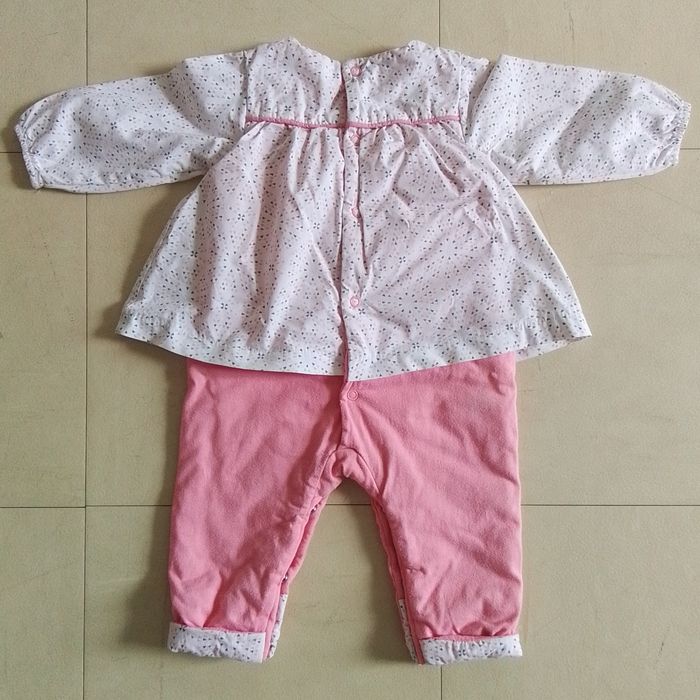 Jolie combinaison fille rose et blanche. Boutonnage dans le dos et entrejambe. Coton épais, manches légères. Taille 6mois. Propre en très bon état. #combinaisonbebefille #combinaisonbebe6mois #combinaisonfille6mois #combinaisonbebeobaibi