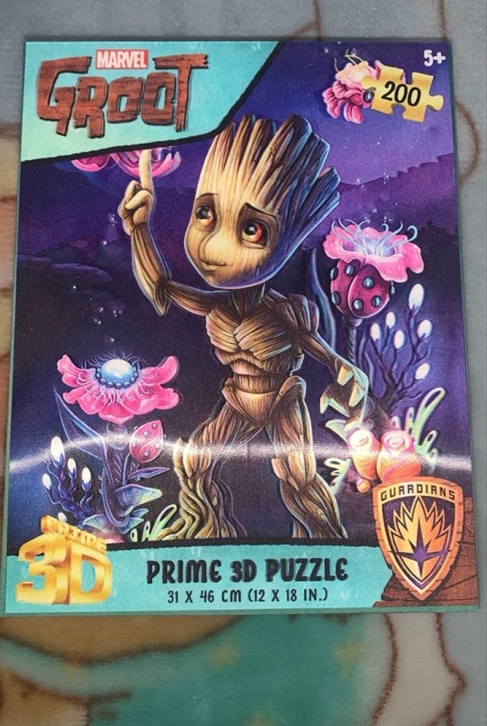 Puzzle Marvel Groot en relief 3D. Illustration colorée et immersive, une fois terminé le rendu est en relief pour un effet visuel impressionnant. Marque: Marvel Modèle : Groot Nombre de pièces : 200 Dimensions : 31 x 46 cm (12 x 18 pouces) Âge recommandé : 5 ans et + Neuf