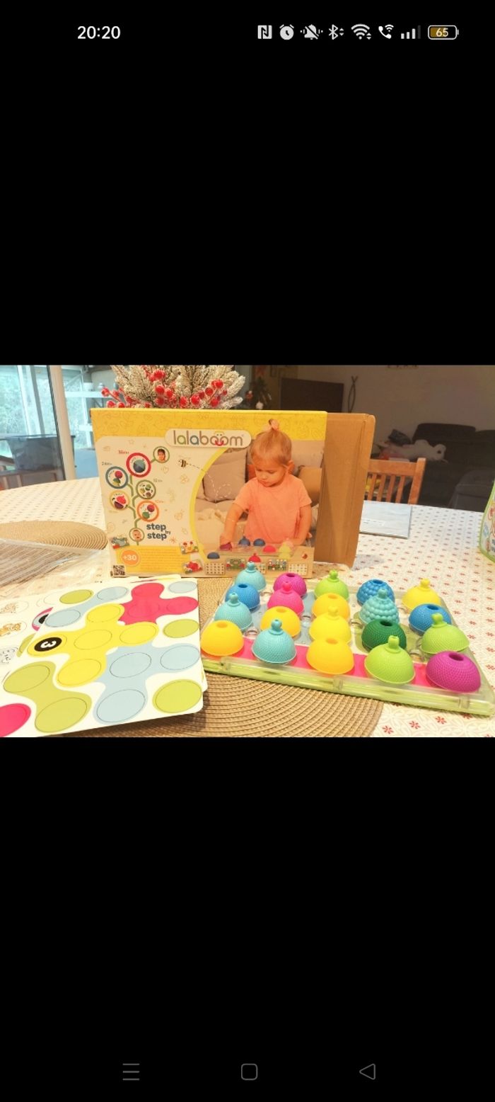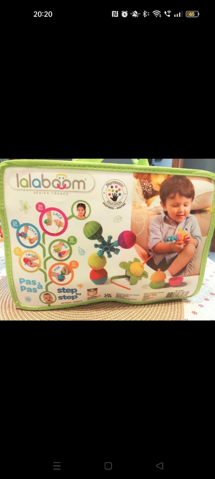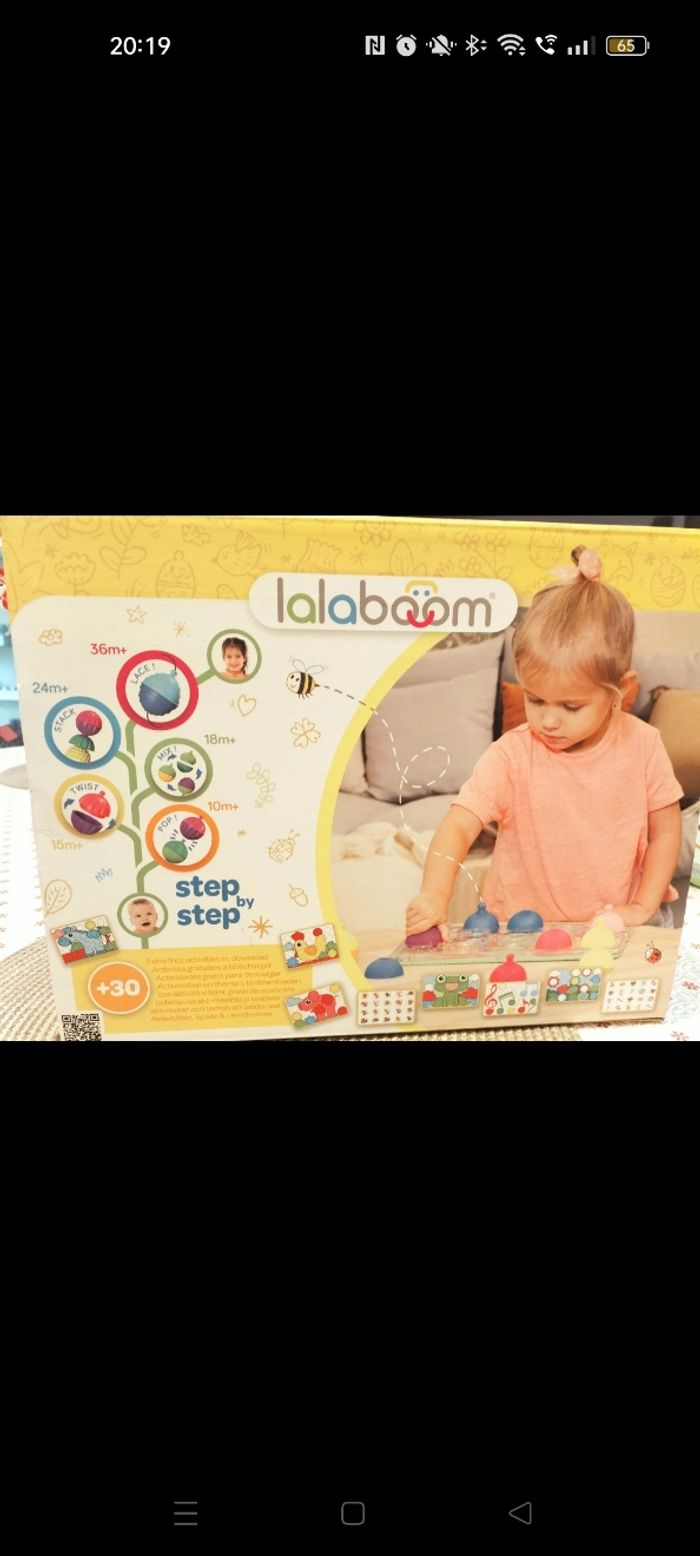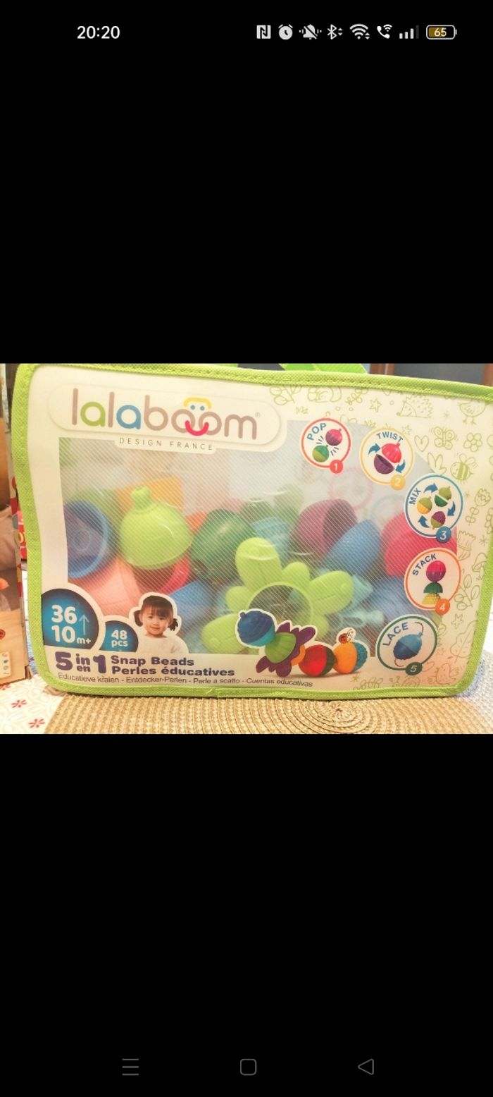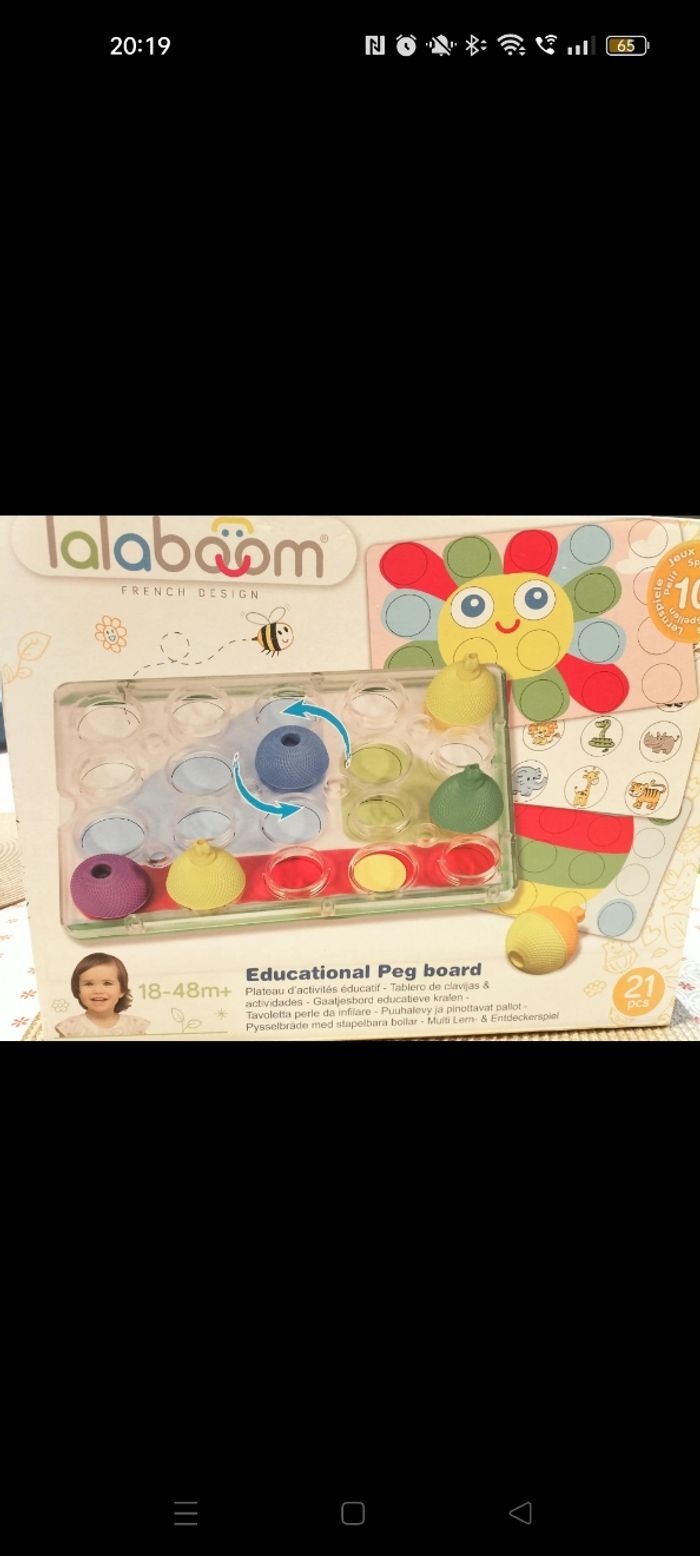 Lot planche d'activité + sac de perles Lalaboom, il manque 2 perles et le lacets dans le sac . 18-24 mois